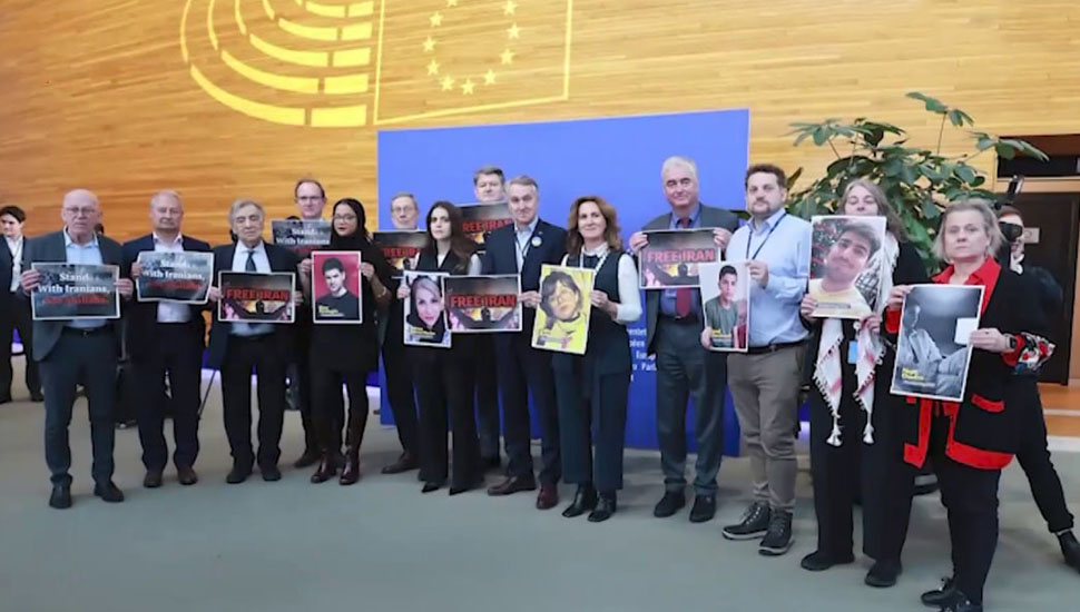 در پایان جلسه، بخشی از نمایندگان پارلمان اروپا هر یک تصویری از شهیدان قیام ایران را در دست گرفتند و بهصورت جمعی با عکسهای آنان ایستادند.