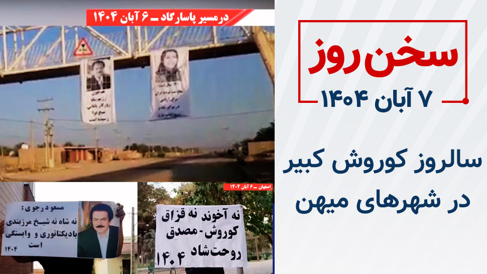 فرزندان دلاور ایران زمین و وارثان حقیقی کوروش کبیر، که برای آزادی میهن از چنگال ضحاک دوران بهپا خاستهاند، با برافراشتن شعار «مرگ بر ستمگر، چه شاه باشه چه رهبر»، مرزبندی مقاومت رهاییبخش میهنی با دیکتاتوری و وابستگی را ترسیم کردند و در شعار «نه آخوند نه قزاق، کوروش، مصدق، روحت شاد»، پیام و راه عزت و آزادی و مسیر گسستن زنجیرها را بهمناسبت سالروز کوروش در ۷ آبان به میان مردم آوردند.